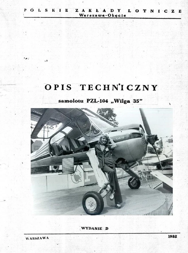Opis samolotu WILGA 35. Dokumentacja zawiera 180 stron z licznymi rysunkami komponentów samolotu.